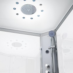 Faites de votre douche quotidienne un vrai moment de détente. Alliez l’utile à l’agréable avec nos cabines douches avec jets hydromassant. Rien de tel pour bien démarrer une longue journée que des jets toniques qui vous mettent en forme. Pour ajouter un peu de féérie, choisissez l’ambiance lumineuse parmi 7 couleurs.